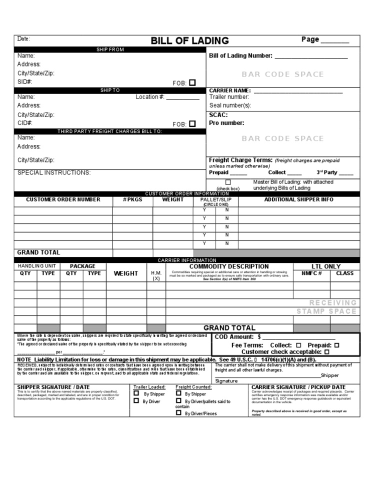 Central transport bill of lading page __ _ name: Web here’s a simple bill of lading definition: (print) shipper print two copies of this page: Web bill of lading short form a short form bill of lading provides only the necessary information — contact and shipment information, instructions, and signatures — without additional terms and conditions.