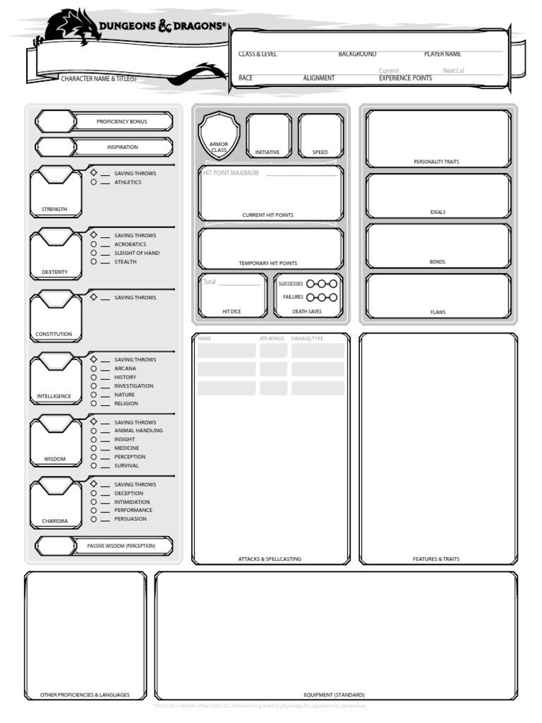 D&D Character Sheet Png This custom, 5th edition character sheet was