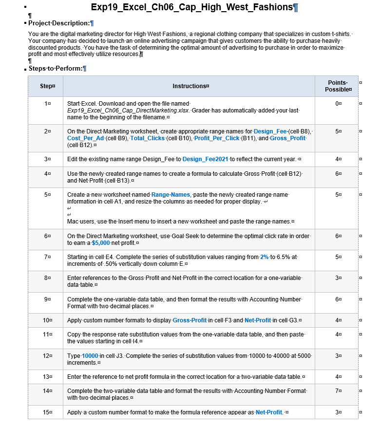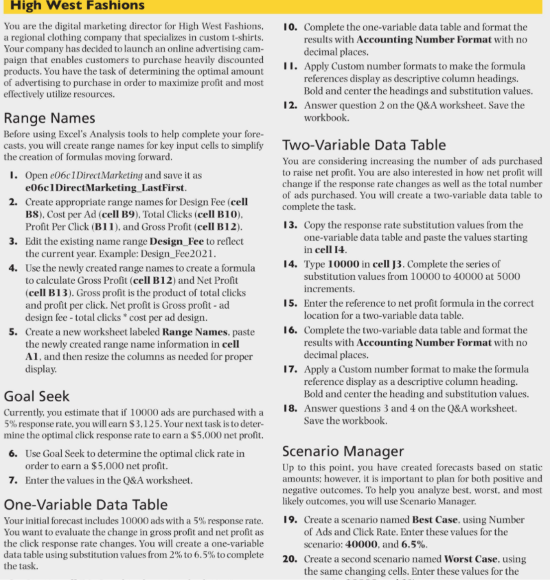 Grader hasautomatically added your last. Learn how to bring deca to your school. Download and open the file named exp19_excel_ch06_cap_directmarketing.xlsx. Hospitality and management in high schools and colleges around the globe. You are the digital marketing director for high west fashions, a regional clothing.