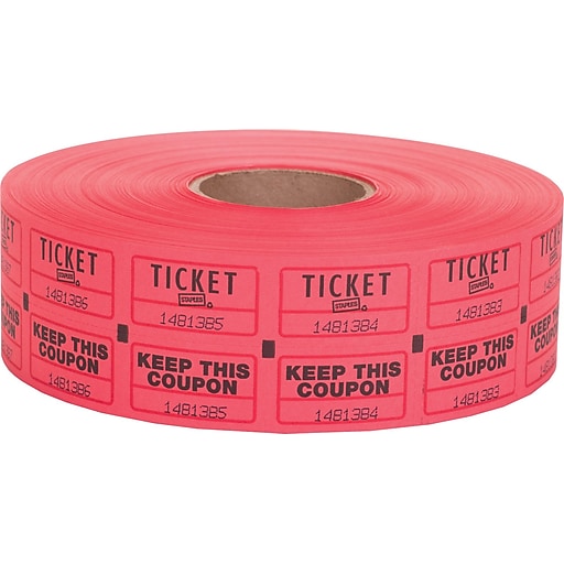 Staples Double Ticket Roll, Red, 2000/Roll, 1 Roll Staples